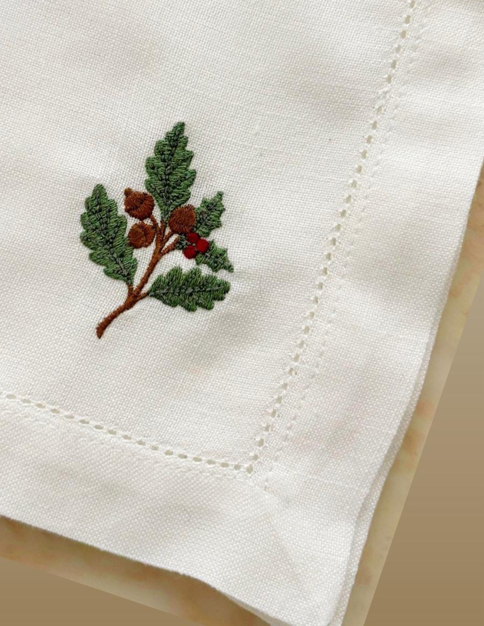 J'ai imaginé une collection capsule saisonnière pour le souvenir, avec l’envie de retrouver le charme des trousseaux d’autrefois. Le désir de reprendre goût au raffinement discret des serviettes brodées de nos grands-mères, et plus largement des linges anciens. Intemporels et dans l’air du temps, j’ai créé des dessins exclusifs, confiés aux mains talentueuses de mes brodeuses, pour soutenir nos savoirs-faire français et nos traditions. Car c’est à table que tout se passe : au cœur du foyer, dans ces rituels doux où l’on partage, où l’on se transmet. Aux côtés d’objets pensés pour durer, qui deviennent naturellement des objets à transmettre